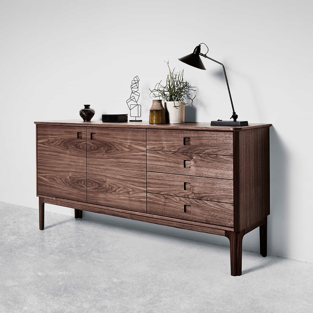 SM300 skenkurinn frá Skovby er hannaður af danska arkitektinum Per Hånsbæk.  Skenkurinn er hannaður í retro stíl en með nútímalegri virkni.  Per Hånsbæk hefur lengi verið þekktur fyrir samspil forms og virkni í sinni hönnun.  Skenkurinn er rúmgóður, en á sama tíma fallegur.